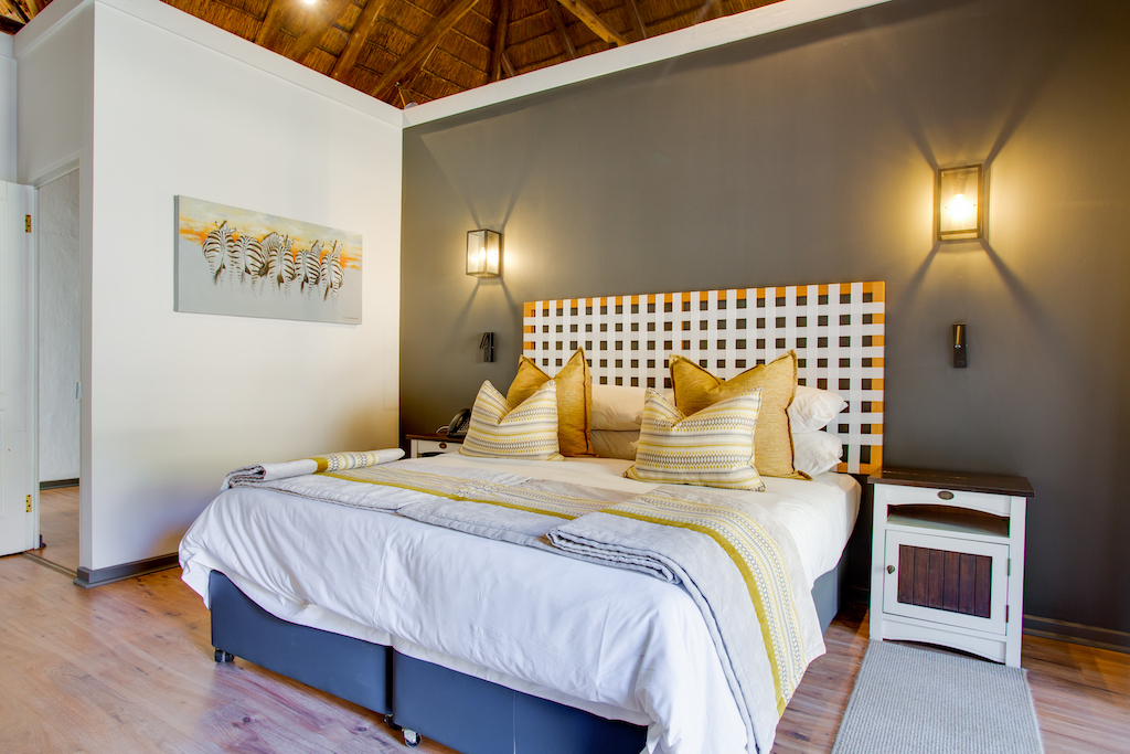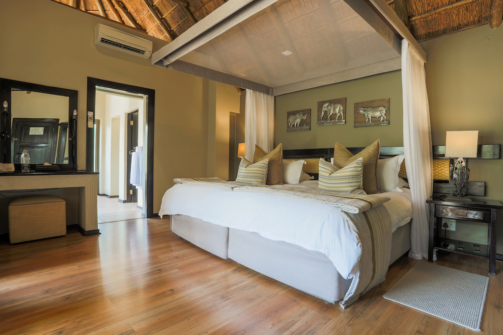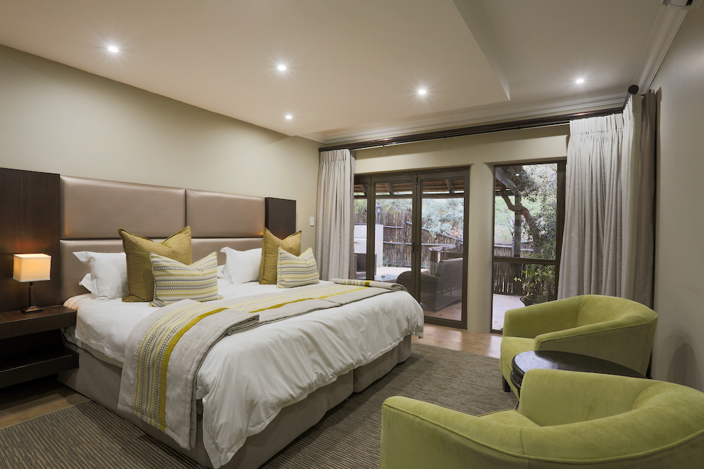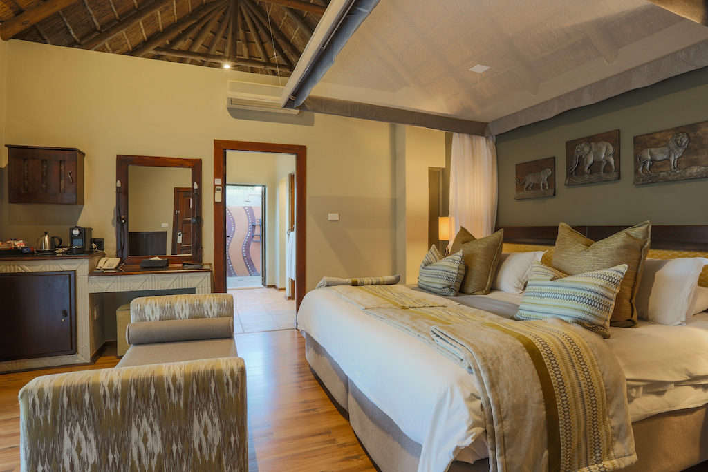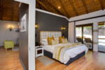 Luxurious suites provide a calm retreat after exciting days in the bush. Warm and earthy tones create a welcoming feeling, while a covered patio and outdoor shower allow you to relax into the unique environment of the Pilanesberg.