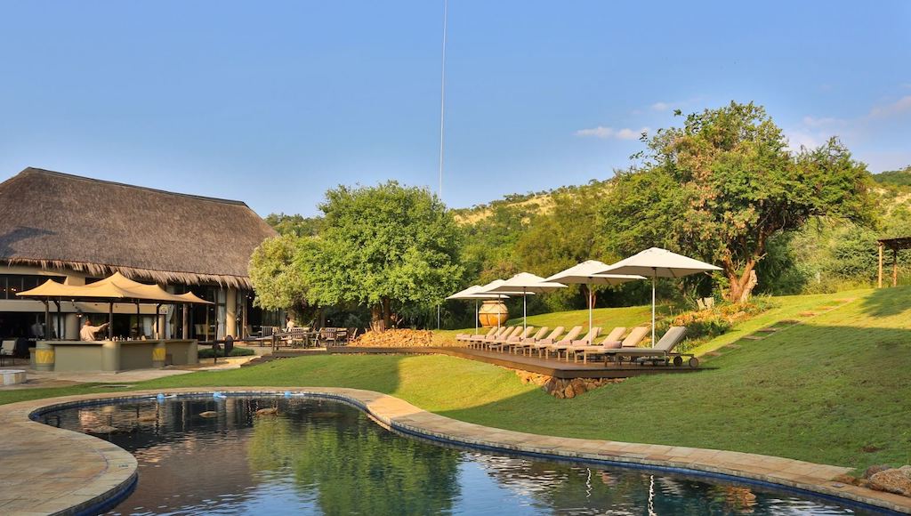 Ivory Tree Game Lodge lies in a natural amphitheatre surrounded by mountains and immersed in riverine woodlands that are dissected by ancient elephant trails. In the northeastern part of the Pilanesberg, Ivory Tree covers an oasis of luxury in one of South Africa’s favourite wilderness areas. A large pool, the Amani African Spa, outdoor dining and spectacular game viewing make for the perfect holiday.