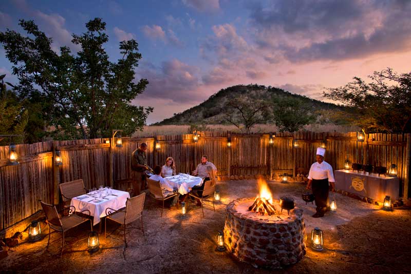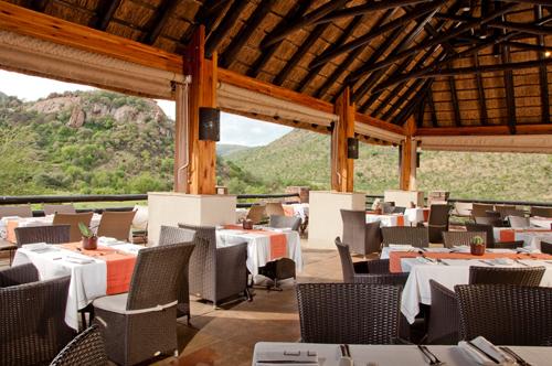 In the morning the restaurant serves up a hearty English breakfast. A buffet lunch and carvery dinner dish up international delicacies and traditional South African. The restaurant overlooks a waterhole and a scenic landscape of granite rock formations.