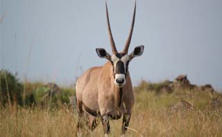 The gemsbok is a large antelope that has adapted to live in hot, dry areas where most large mammals cannot. Gemsbok or Oryx survive by getting water from fruits and vegetables and can withstand temperatures ranging up to 45 degrees Celsius. The current population of Gemsbok or Oryx in South Africa is estimated at 373,000.